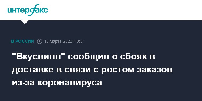 "Вкусвилл" сообщил о сбоях в доставке в связи с ростом заказов из-за коронавируса