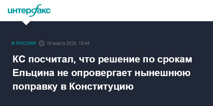 При этом КС (на страницах 44-45 документа) особенно отметил, что определение 1998 года об ограничении двумя сроками возможность для Бориса Ельцина занимать пост президента РФ, не может быть возражением для рассматриваемой поправки.