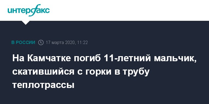 Москва. 17 марта. INTERFAX.RU - Уголовное дело о гибели 11-летнего мальчика, насмерть разбившегося о трубу теплотрассы во время катания с горки, расследуют на Камчатке, сообщает во вторник СУ СКР по региону.