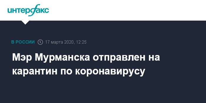 Москва. 17 марта. INTERFAX.RU - Глава администрации Мурманска Евгений Никора отправлен на карантин в инфекционное отделение областной клинической больницы им.П.А.Баяндина, сообщили "Интерфаксу" в пресс-службе городской администрации.