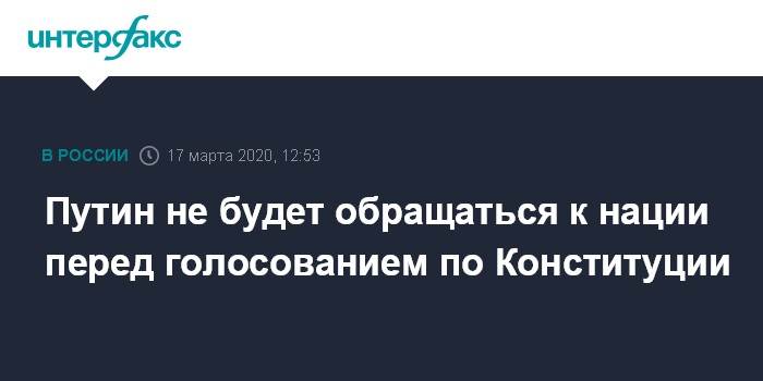 Путин не будет обращаться к нации перед голосованием по Конституции