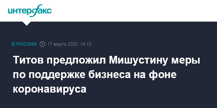 "Ситуация с мировой пандемией коронавируса и последовавшие за ней изменения на мировом рынке обострили и без того серьезные вызовы для российской экономики. (...) С нашей точки зрения, прежде всего надо уйти от практики преодоления кризиса 2014-2015 годов и сосредоточить основные меры поддержки не на банковской сфере и крупном сырьевом бизнесе, а на предприятиях реального сектора экономики", - говорится в письме Титова председателю правительства, предоставленном "Интерфаксу" пресс-службой уполномоченного.