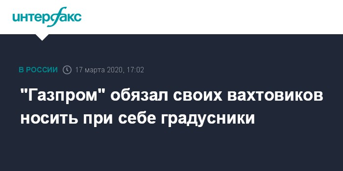 Москва. 17 марта. INTERFAX.RU - Дочерние компании "Газпрома", широко использующие в своей работе вахтовый метод, применяют специальные меры по борьбе с коронавирусной инфекцией.
