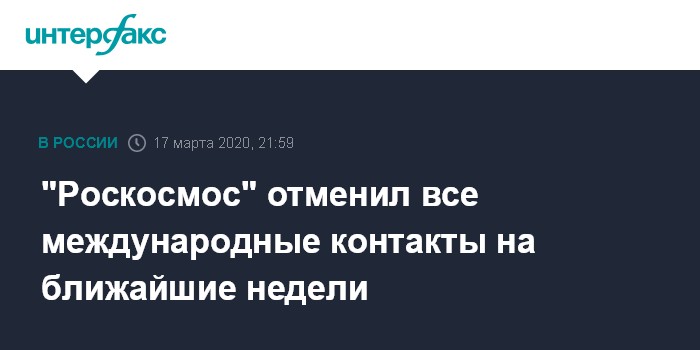 Москва. 17 марта. INTERFAX.RU - "Роскосмос" на ближайшие недели отменил все международные контакты и переговоры, заявил глава госкорпорации Дмитрий Рогозин.