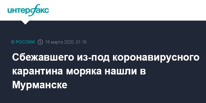 Сбежавшего из-под коронавирусного карантина моряка нашли в Мурманске