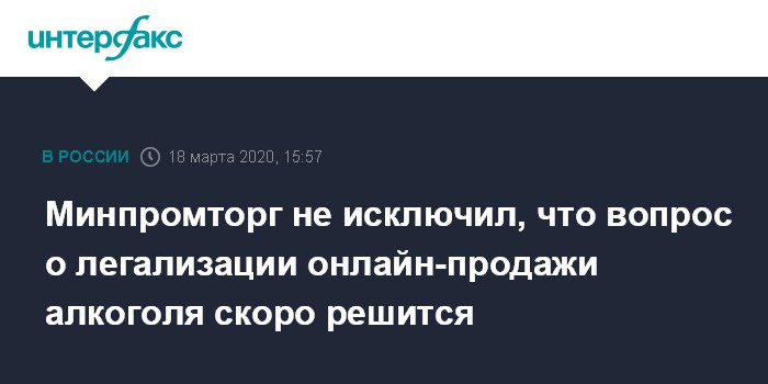 Москва. 18 марта. INTERFAX.RU - Решение о дистанционной продаже алкоголя в условиях эпидемиологической ситуации по коронавирусу может быть принято более оперативно, заявил замглавы Минпромторга Виктор Евтухов.