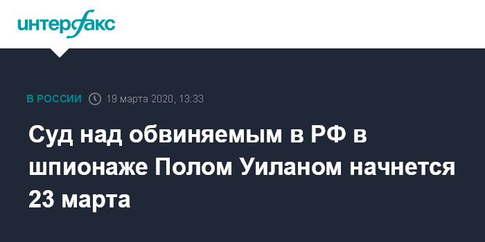 Москва. 19 марта. INTERFAX.RU - Мосгорсуд на следующей неделе приступит к рассмотрению уголовного дела в отношении гражданина США, Великобритании, Канады и Ирландии Пола Уилана, которого в РФ обвиняют в шпионаже.
