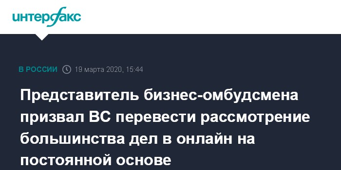 Представитель бизнес-омбудсмена призвал ВС перевести рассмотрение большинства дел в онлайн на постоянной основе