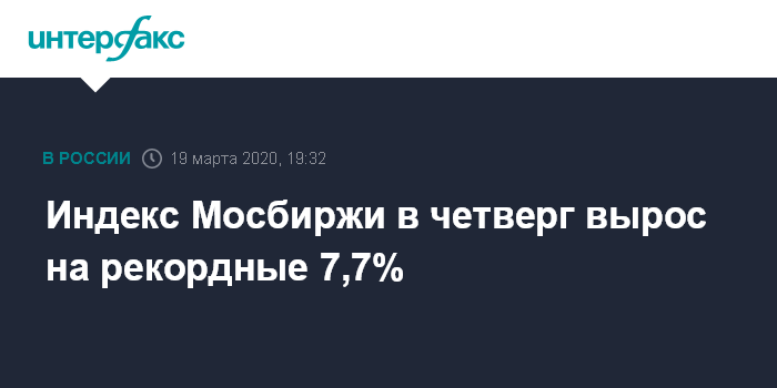 Индекс Мосбиржи в четверг вырос на рекордные 7,7%
