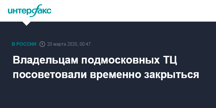 Москва. 20 марта. INTERFAX.RU - Власти Московской области призвали собственников торгово-развлекательных объектов приостановить работу.