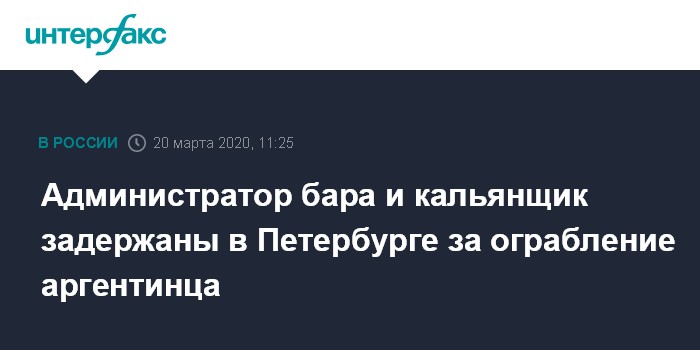 Администратор бара и кальянщик задержаны в Петербурге за ограбление аргентинца