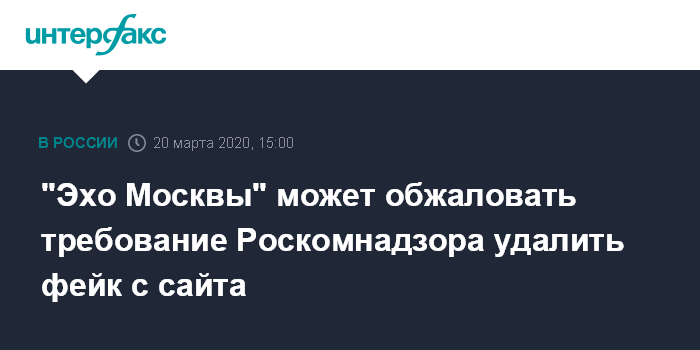 "Эхо Москвы" может обжаловать требование Роскомнадзора удалить фейк с сайта
