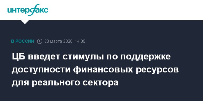 Москва. 20 марта. INTERFAX.RU - Банк России принял меры по поддержке потенциала финансового сектора по предоставлению ресурсов экономике. Регулятор предупредил, что изменение внешней конъюнктуры и давление на внутренний спрос из-за пандемии могут привести к снижению доступности финансовых ресурсов для реального сектора.