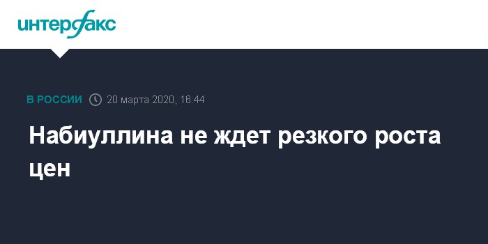 Москва. 20 марта. INTERFAX.RU - Банк России не видит риска резкого роста цен и в целом, и на определенные виды продукции в условиях борьбы с коронавирусом, сказала председатель ЦБ Эльвира Набиуллина. Ее спросили, может ли из-за введения режима ЧА вдвое подорожать бензин и нефтепродукты.
