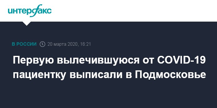 Москва. 20 марта. INTERFAX.RU - Первую заразившуюся коронавирусом пациентку выписали в Московской области, сообщает региональный штаб по контролю и мониторингу ситуации с COVID-19.