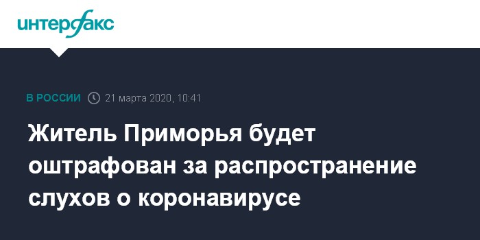 Житель Приморья будет оштрафован за распространение слухов о коронавирусе
