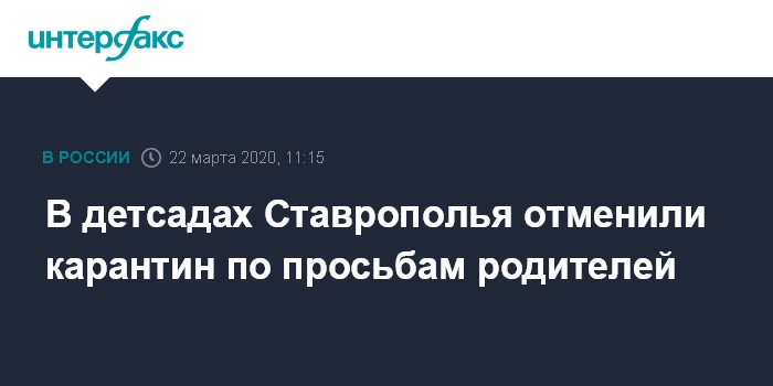 Ранее губернатор Ставрополья сообщал, что в целях недопущения распространения коронавируса, с понедельника и до 12 апреля детские сады региона будут закрыты на карантин.