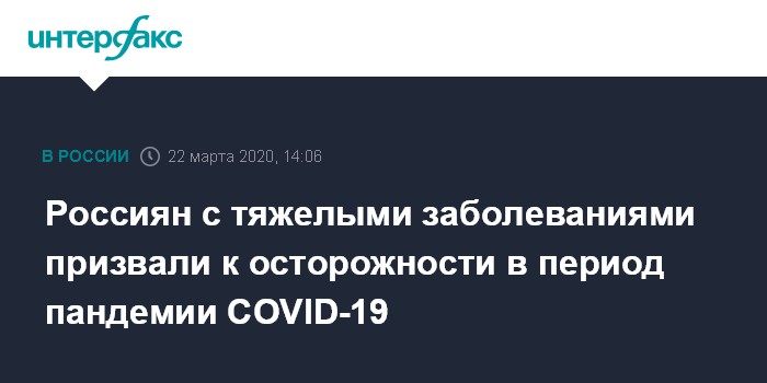 Россиян с тяжелыми заболеваниями призвали к осторожности в период пандемии COVID-19