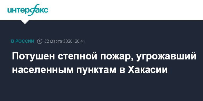 Москва. 22 марта. INTERFAX.RU - Пожарные потушили пал травы, который угрожал населенным пунктам в Усть-Абаканском районе Хакасии, сообщает пресс-служба республиканского главного управления МЧС в воскресенье вечером.