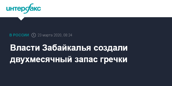 Москва. 23 марта. INTERFAX.RU - Правительство Забайкалья в связи с пандемией коронавируса создало двухмесячный запас гречки и расширило список товаров первой необходимости, включив в него пять видов товаров для новорожденных, в том числе подгузники, пеленки и соски-пустышки. Об этом сообщила пресс-служба краевой администрации.