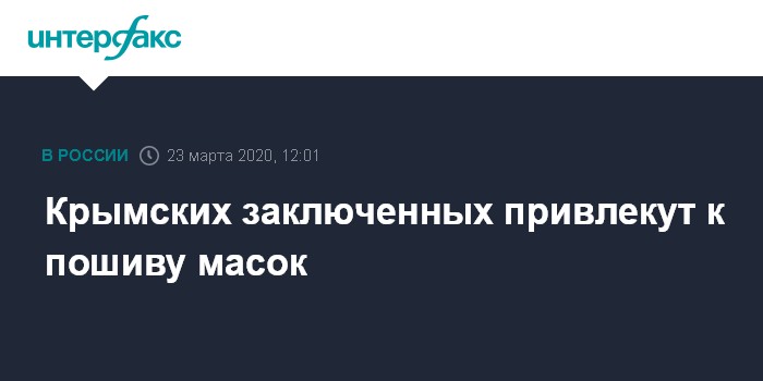 Москва. 23 марта. INTERFAX.RU - Управление ФСИН по Крыму подтвердило готовность привлечь заключенных керченской колонии к пошиву масок, также их шить готовы пять местных индивидуальных предпринимателей и акционерных обществ, заявил премьер-министр региона Юрий Гоцанюк. По его словам, скоро в республику должны подвезти для этого марлю.