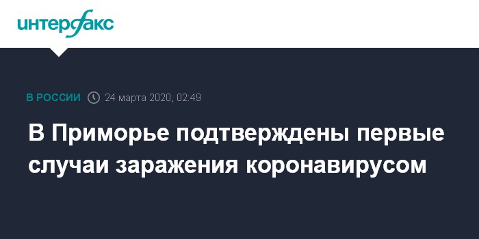 Москва. 24 марта. INTERFAX.RU - В Приморском крае лабораторно подтверждены первые два случая заболевания коронавирусной инфекцией COVID-19, сообщила пресс-служба администрации региона.