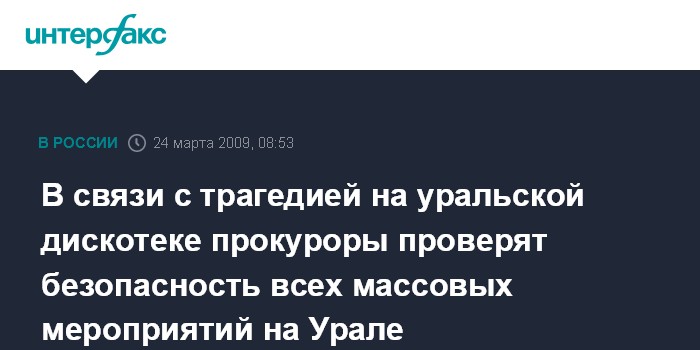В связи с трагедией на уральской дискотеке прокуроры проверят безопасность всех массовых мероприятий на Урале