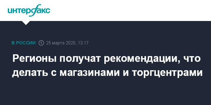 Регионы получат рекомендации, что делать с магазинами и торгцентрами