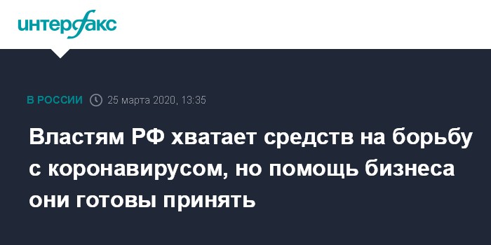Властям РФ хватает средств на борьбу с коронавирусом, но помощь бизнеса они готовы принять