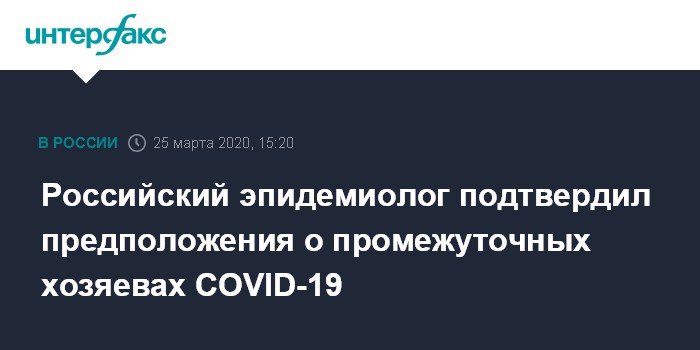 Российский эпидемиолог подтвердил предположения о промежуточных хозяевах COVID-19
