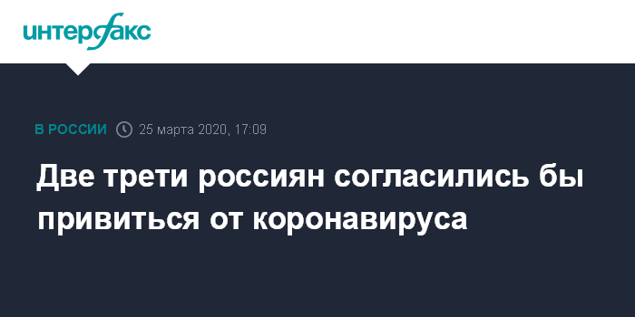 Москва. 25 марта. INTERFAX.RU - Большинство россиян (64%) согласны сделать себе прививку от коронавируса, как только будет разработана соответствующая вакцина, свидетельствуют данные опроса Исследовательского центра портала Superjob.ru, поступившие в среду в "Интерфакс".