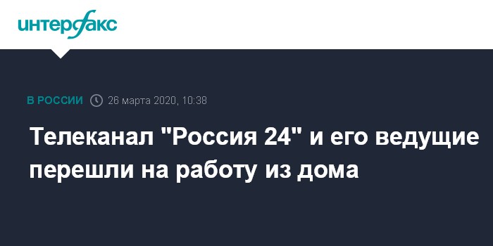 Москва. 26 марта. INTERFAX.RU - Ведущие телеканала "Россия 24" (ВГТРК) перешли на удаленную работу и ведут эфир, находясь дома.