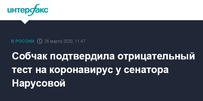 Ранее о том, что анализы у Нарусовой дали отрицательный результат сообщили в Совете Федерации и в аппарате Нарусовой.