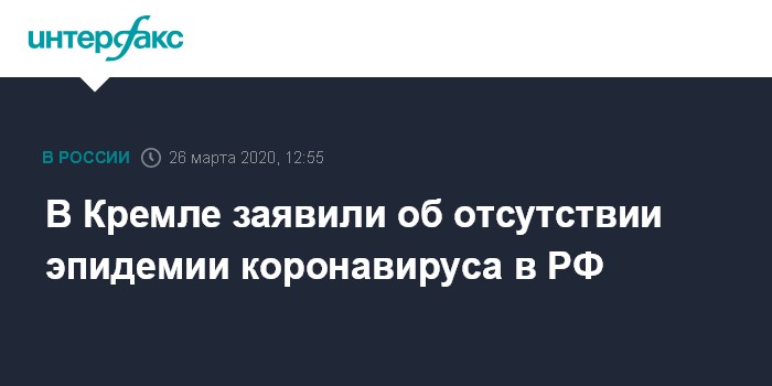 В Кремле заявили об отсутствии эпидемии коронавируса в РФ