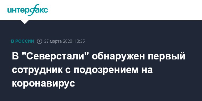 Москва. 27 марта. INTERFAX.RU - В компании "Северсталь" выявлен сотрудник, находящийся под подозрением на коронавирусную инфекцию.