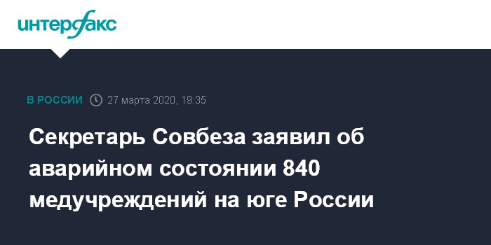 Секретарь Совбеза заявил об аварийном состоянии 840 медучреждений на юге России