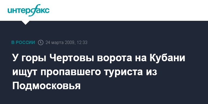 Москва. 24 марта. INTERFAX.RU - В горах у поселка Псебай (Краснодарский край) спасатели продолжают поиски 62-летнего туриста из Московской области, о котором нет известий с 15 марта.