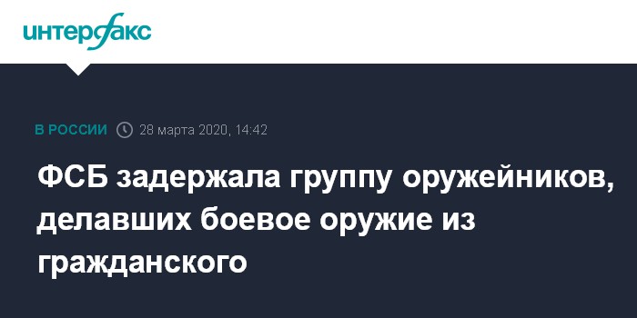 Москва. 28 марта. INTERFAX.RU - Сотрудники правоохранительных органов пресекли деятельность группы, переделывавшей гражданское оружие в боевое, сообщили "Интерфаксу" в Центре общественных связей (ЦОС) ФСБ.