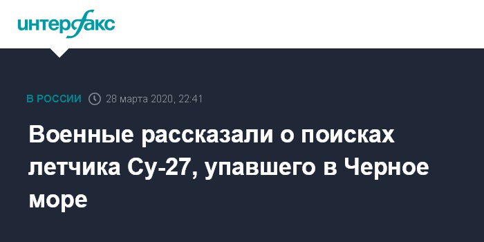 25 марта Минобороны РФ сообщило, что истребитель Су-27 упал в Черное море при выполнении планового полета. Отметка на экранах средств объективного контроля от истребителя Су-27 пропала около 20:10 25 марта в акватории Черного моря в 50 км от Феодосии. В район были направлены корабли Черноморского флота и гражданские суда, находившиеся в непосредственной близости от места происшествия, сообщили военные.