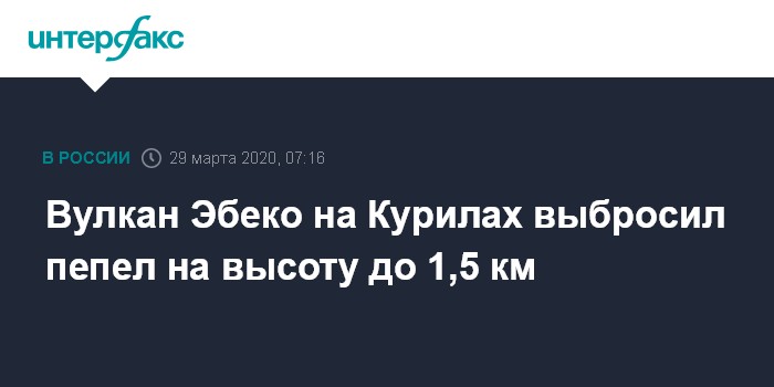 "На вулкане Эбеко произошел пепловый выброс на высоту до 1,5 км. Шлейф распространился в северо-восточном направлении на расстояние до 5 км", - говорится в сообщении на сайте ведомства.