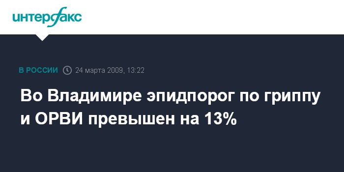 Владимир. 24 марта. INTERFAX.RU - Во Владимире за неделю гриппом заболели 729 горожан и 3686 человекам был поставлен диагноз ОРВИ, сообщили "Интерфаксу" в пресс-службе территориального управления Роспотребнадзора.