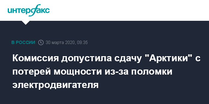 Комиссия допустила сдачу "Арктики" с потерей мощности из-за поломки электродвигателя