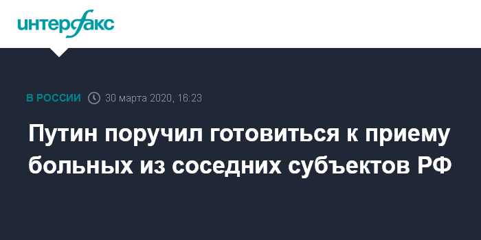 Путин поручил готовиться к приему больных из соседних субъектов РФ