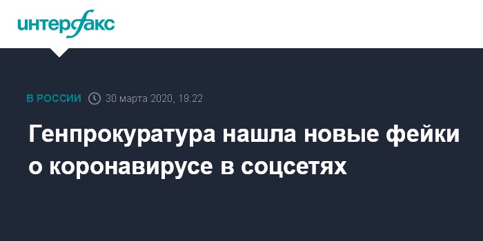 Москва. 30 марта. INTERFAX.RU - Генпрокуратура РФ выявила в интернете ряд фейковых новостей о распространении коронавируса в РФ и обратилась к Роскомнадзору с просьбой заблокировать недостоверную информацию.
