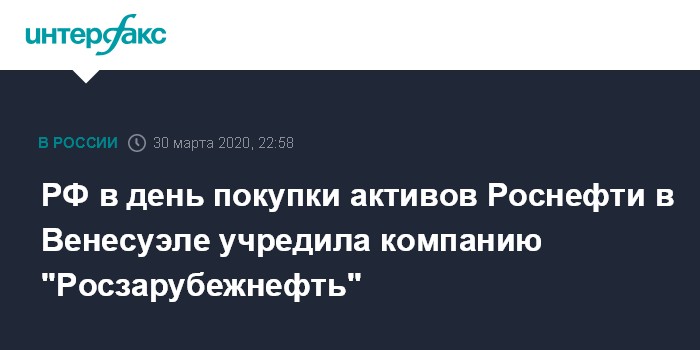 РФ в день покупки активов Роснефти в Венесуэле учредила компанию "Росзарубежнефть"