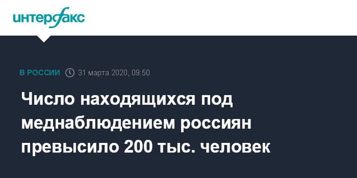 Число находящихся под меднаблюдением россиян превысило 200 тыс. человек