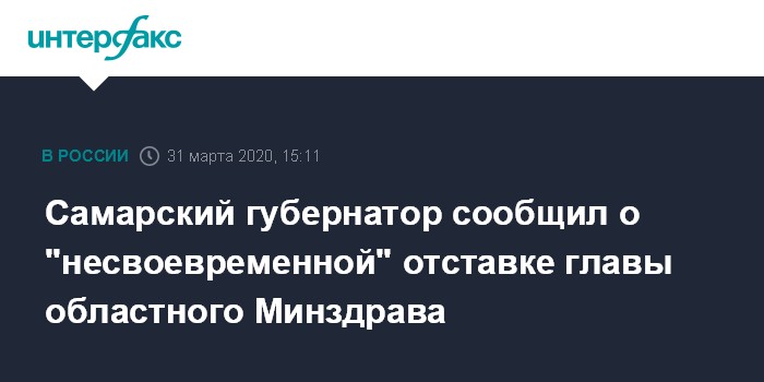 Самарский губернатор сообщил о "несвоевременной" отставке главы областного Минздрава
