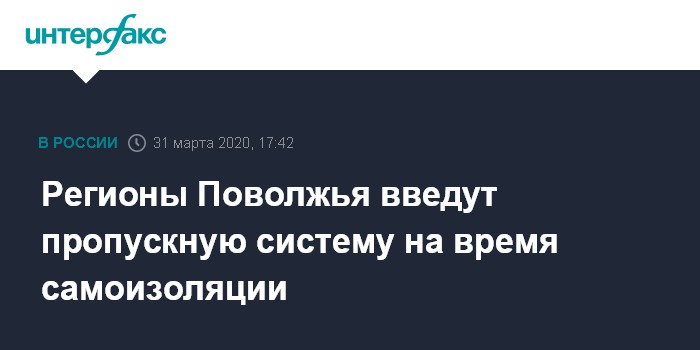 Москва. 31 марта. INTERFAX.RU - Система пропусков будет действовать в ряде регионов Поволжья в период полной самоизоляции, покидать свои дома граждане смогут, оформив специальные документы.