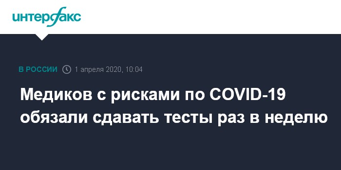 Москва. 1 апреля. INTERFAX.RU - Роспотребнадзор обязал медиков, у которых есть риск заразиться коронавирусом на работе, сдавать анализы на COVID-19 не реже раза в неделю, а при появлении симптомов - немедленно. Об этом говорится в постановлении главы службы Анны Поповой, документ опубликован на официальном портале правовой информации.