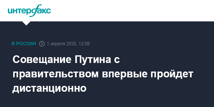 Москва. 1 апреля. INTERFAX.RU - Президент РФ Владимир Путин в среду впервые проведет совещание с членами правительства в дистанционном формате посредством телеконференции, сообщил пресс-секретарь президента РФ Дмитрий Песков.